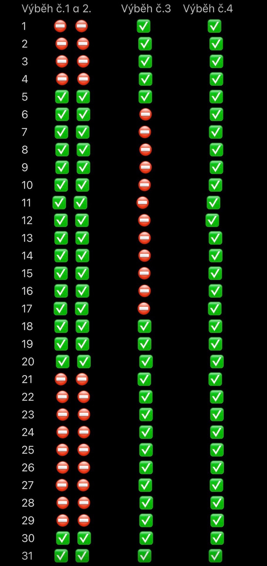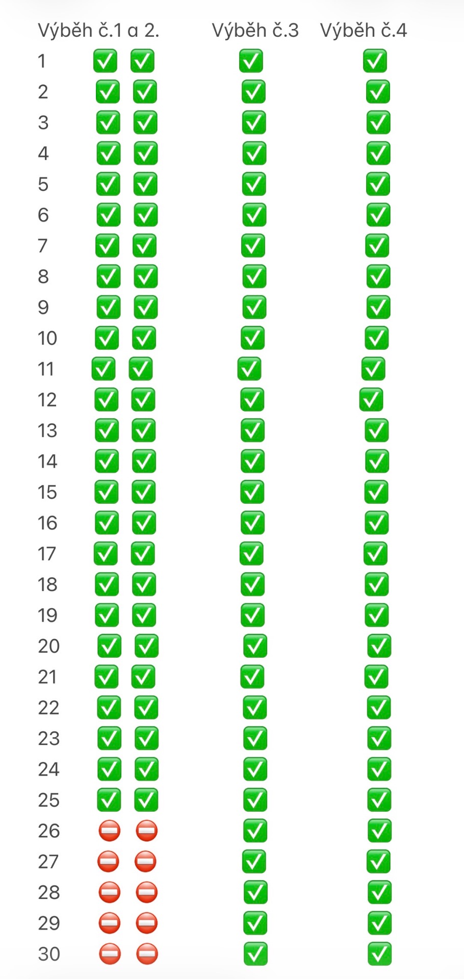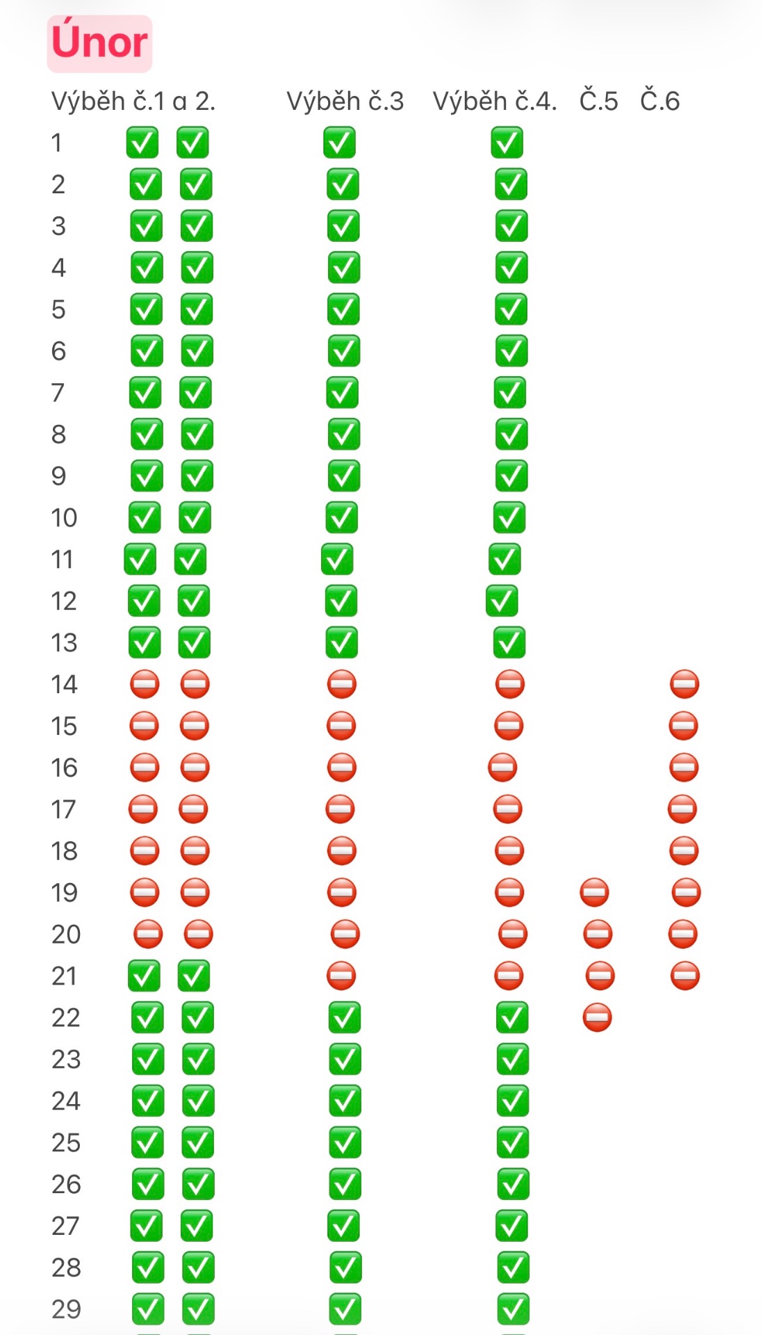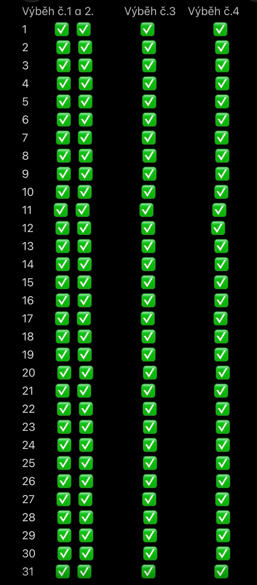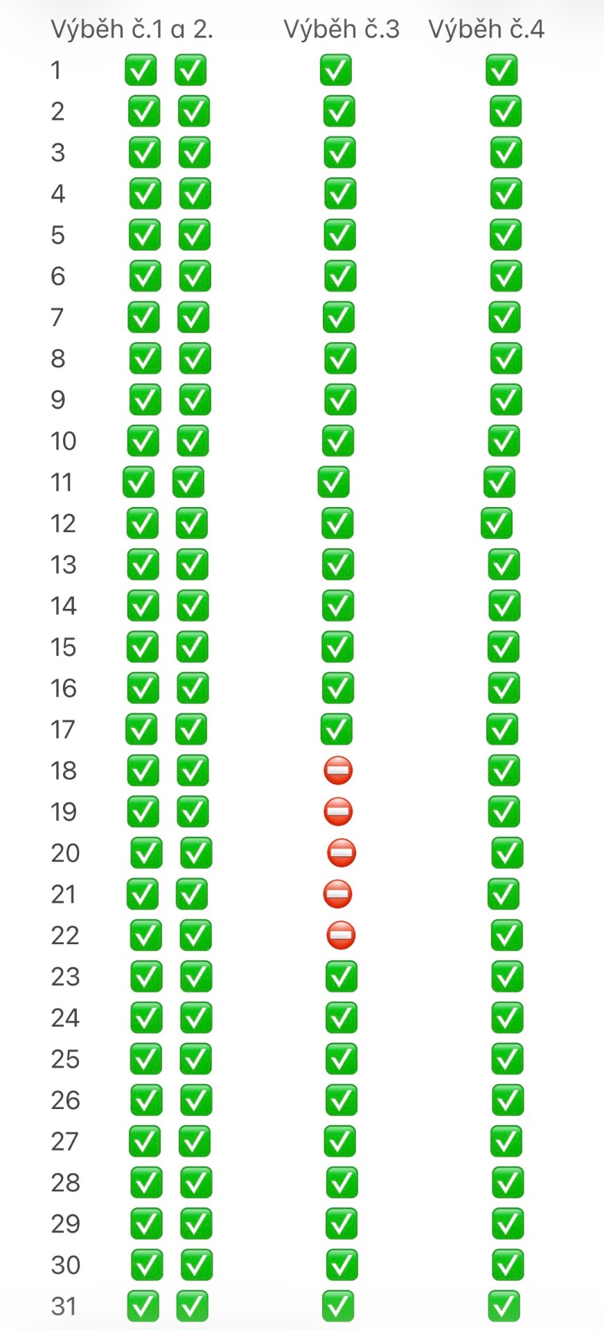 Výběh č.1, 2, 3, 4 - volno ✅ obsazeno ⛔️ předb.rezervace☑️
